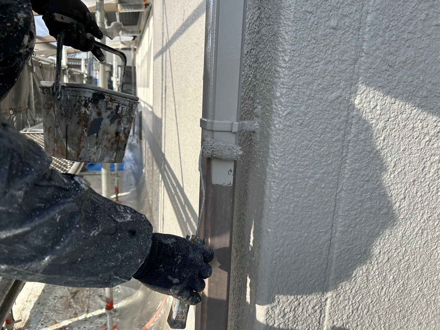 竪樋もケレンしてから溶剤塗料で塗装します。