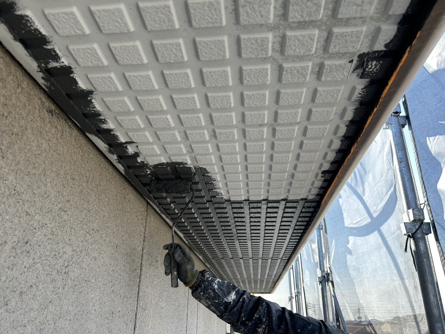 軒天塗装は、屋根の裏側(軒天)に塗料を塗る作業で、雨水から建物を守り、美観を保ち、劣化を防ぐために重要です