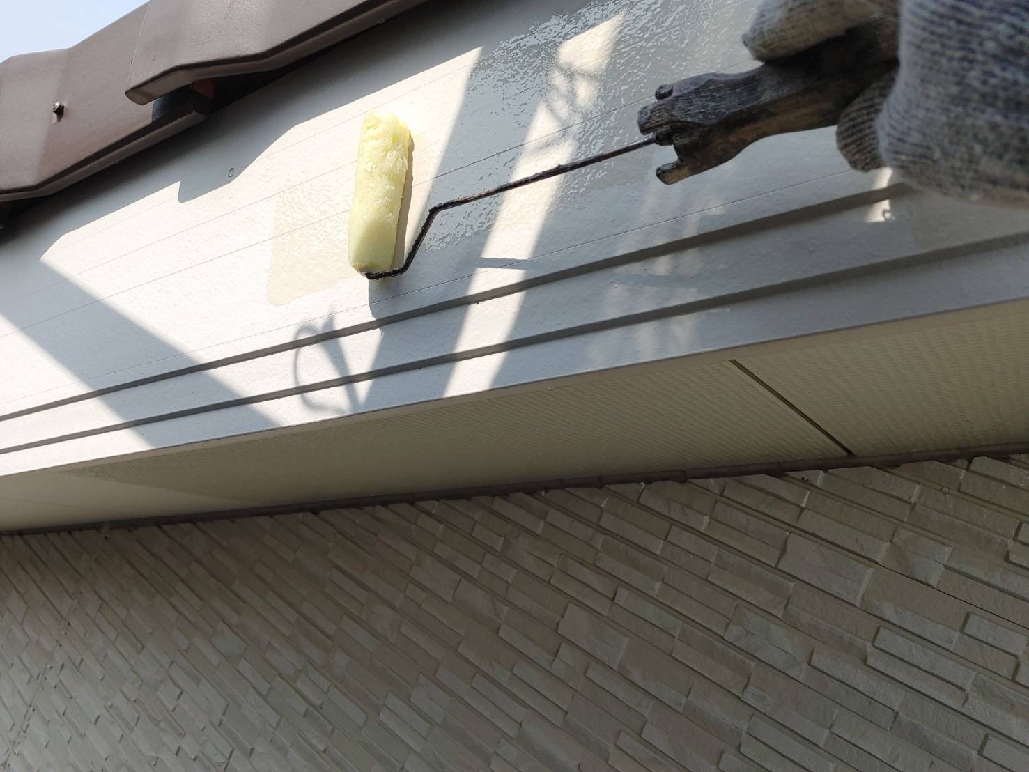 軒天塗装1回目(*^^)v