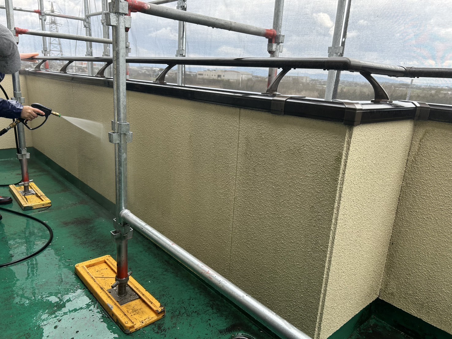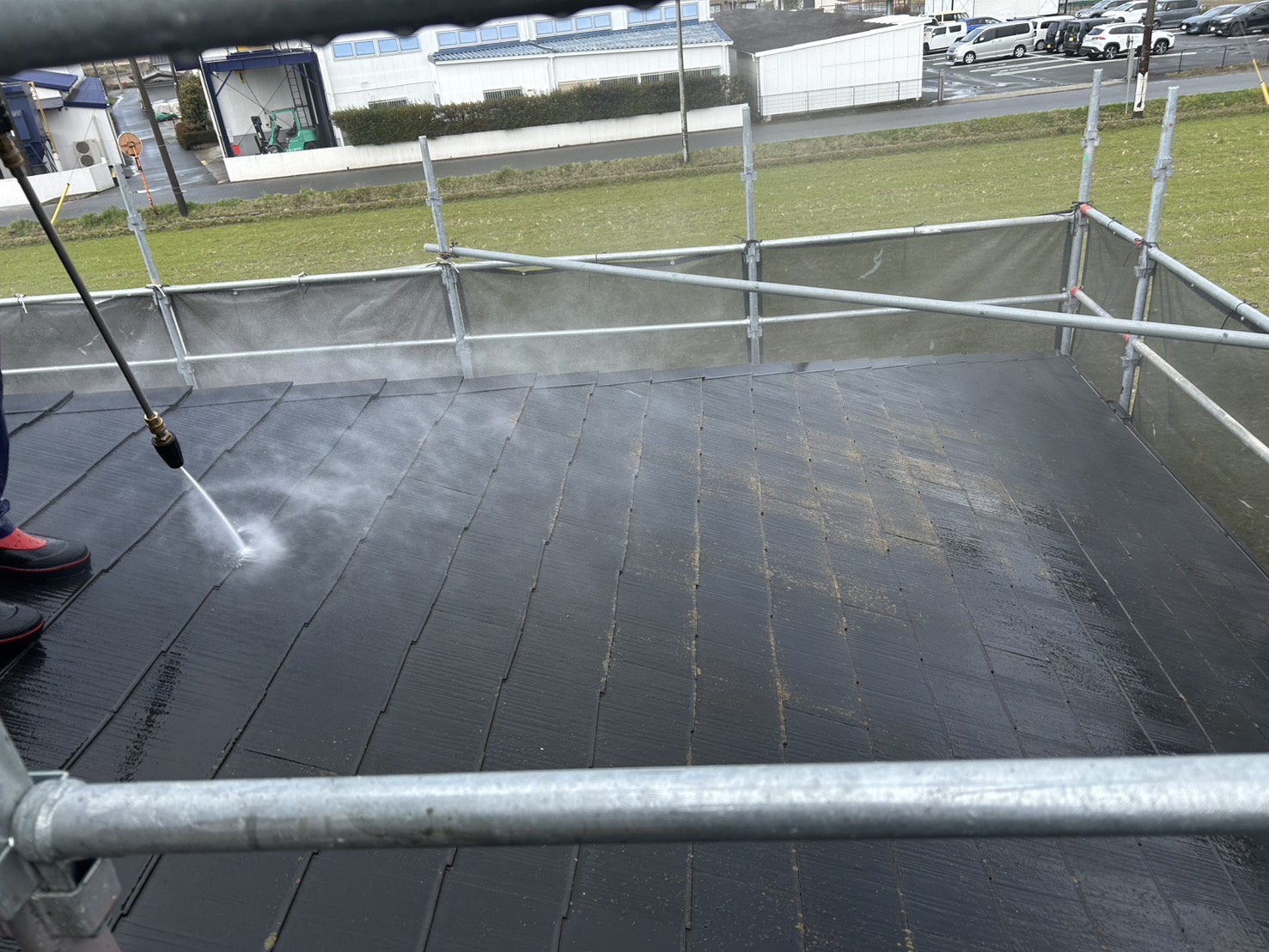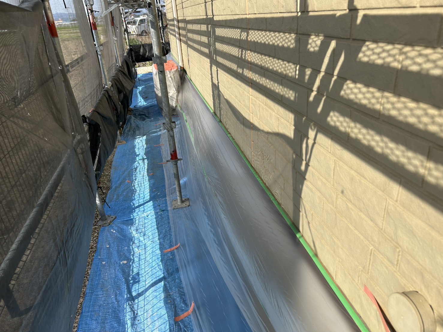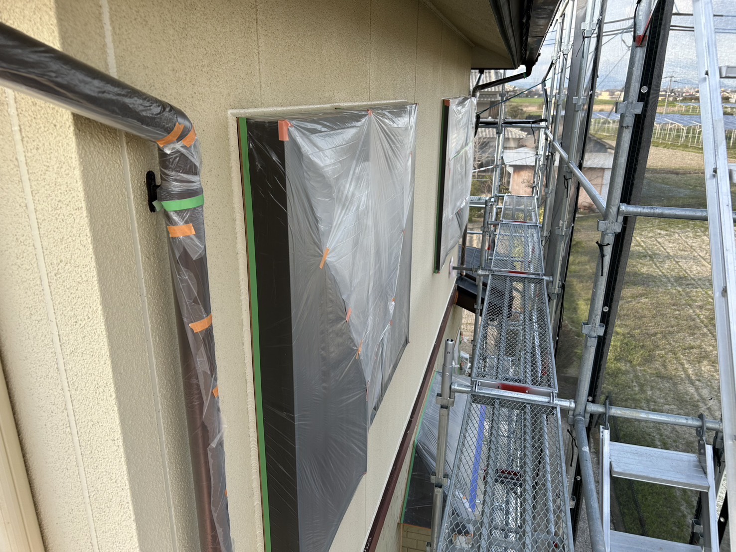 久留米市 住宅塗装 養生と高圧洗浄です!