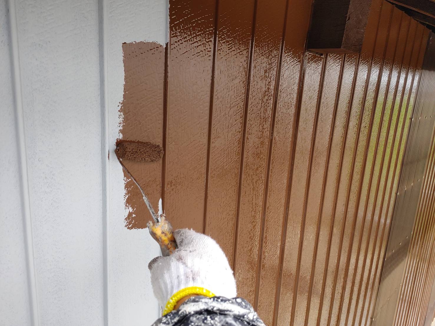 軒天部分にはキシラデコールコンゾランのウォルナット色を使用しました。(*^^)v