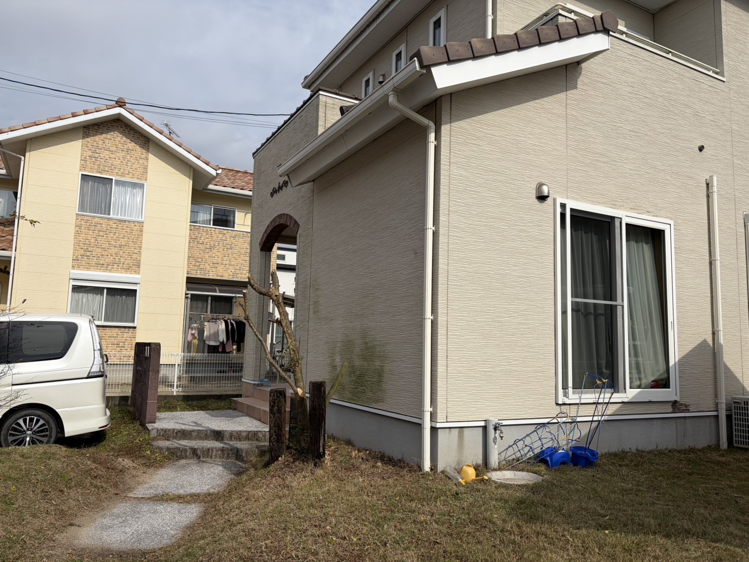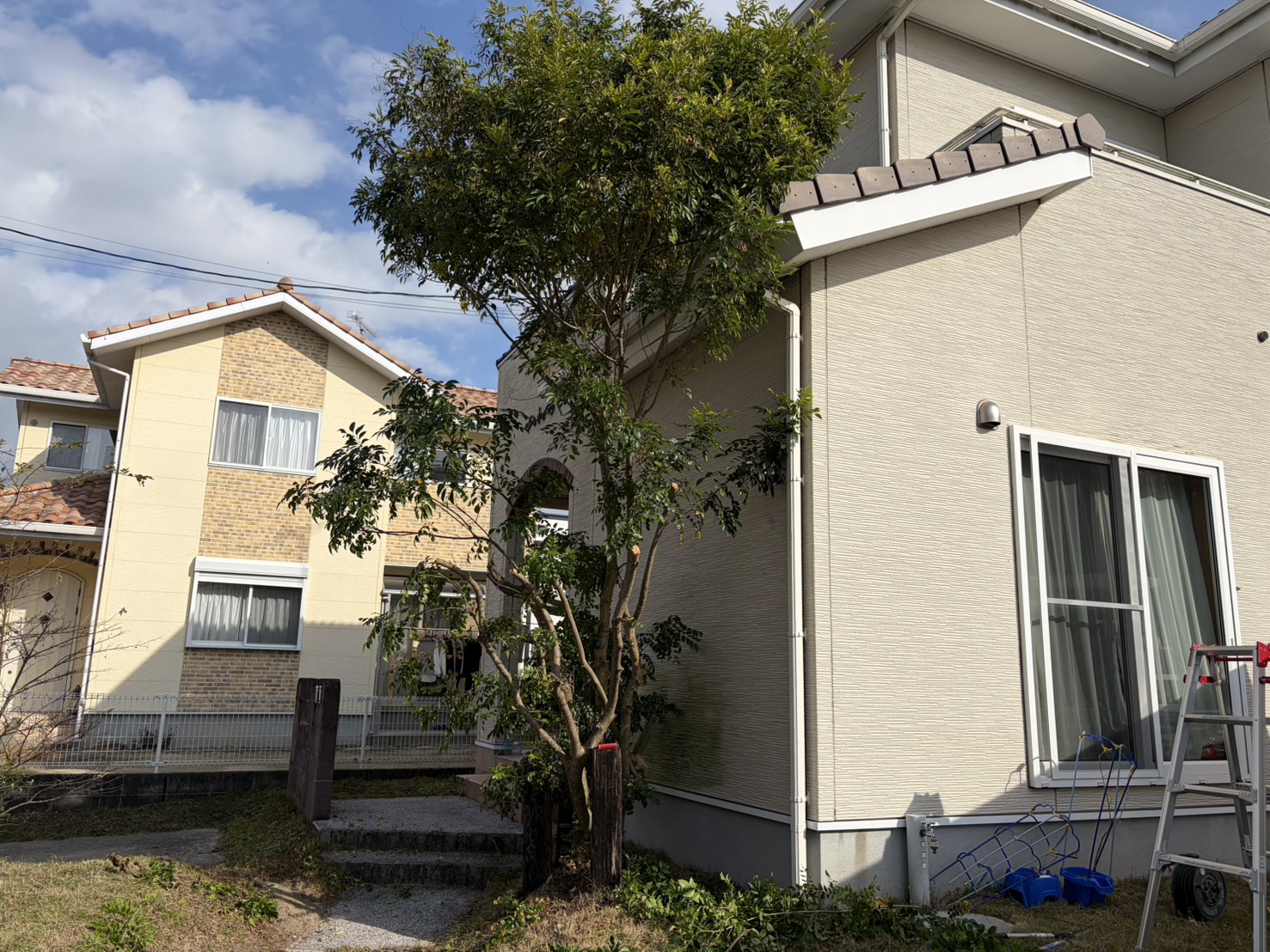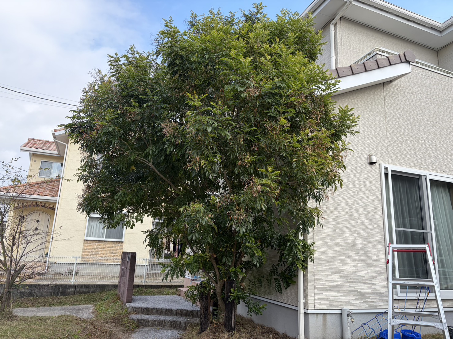 木の高さが3メートル超えていましてお客様に手に負えなくなったので塗装前に伐採することになりました。
