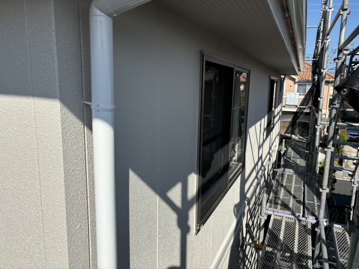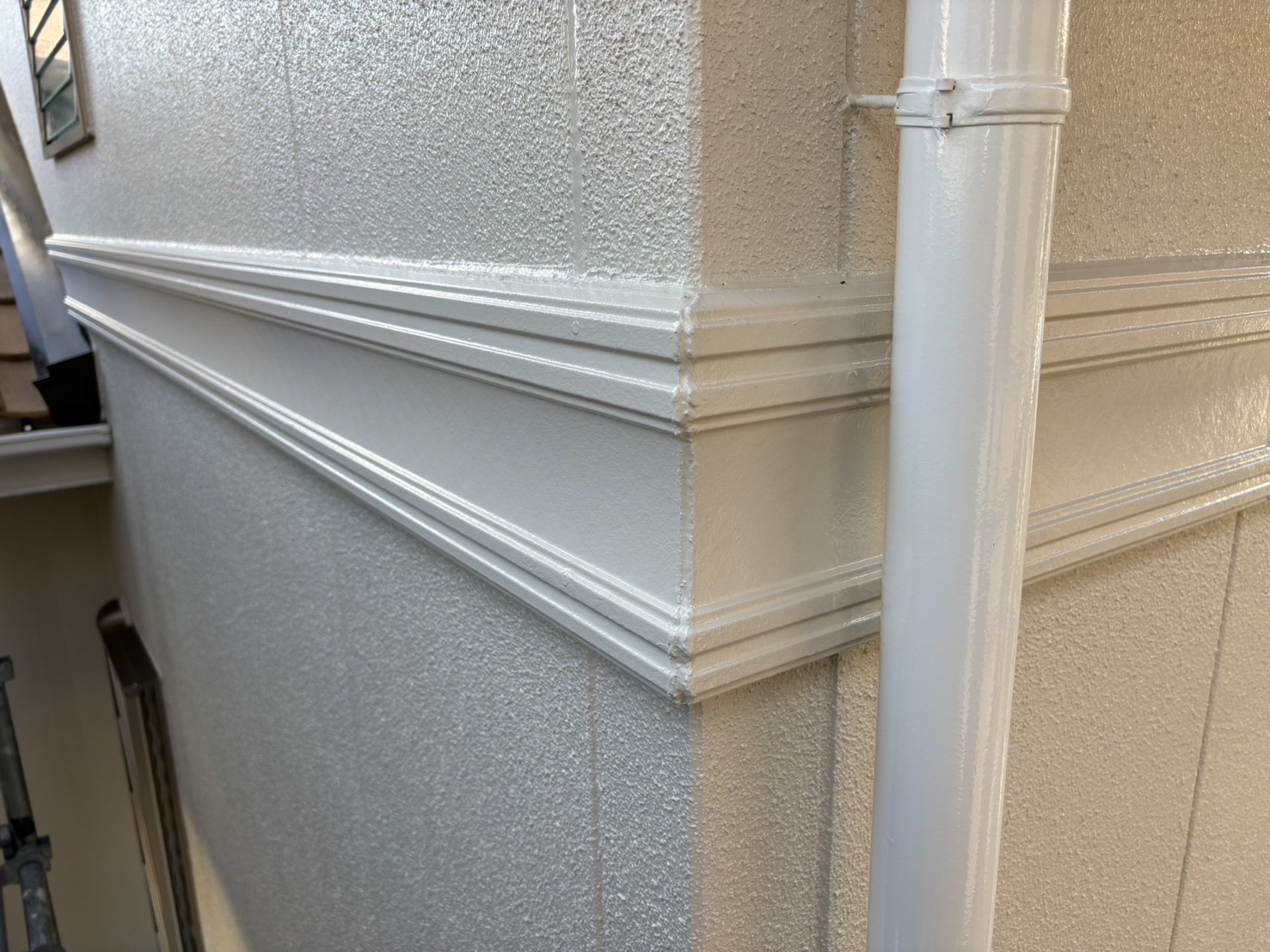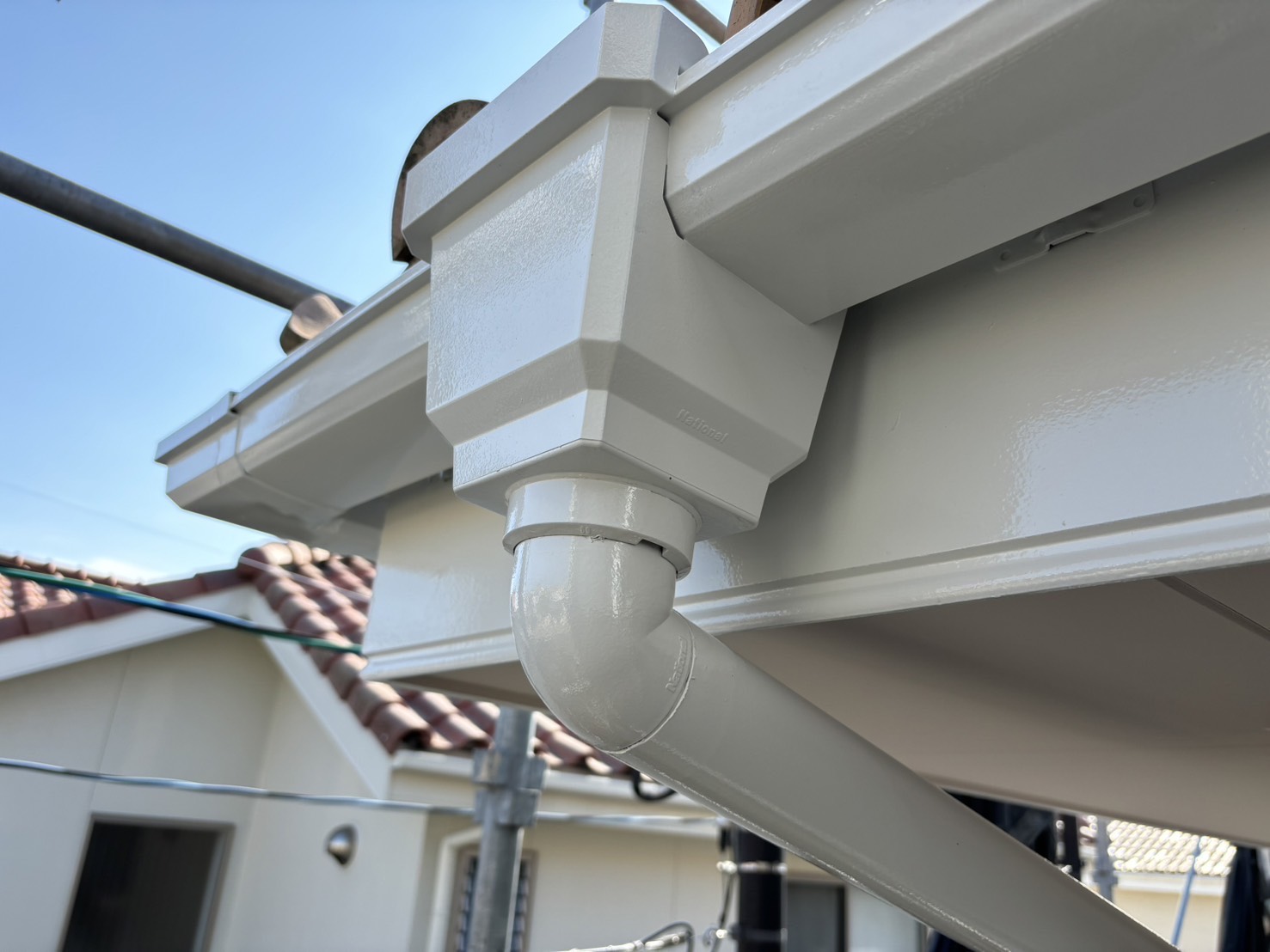 幕板と雨樋、外壁です。色は同じ色で塗装しております。22-80Bです。