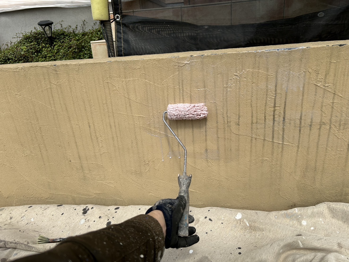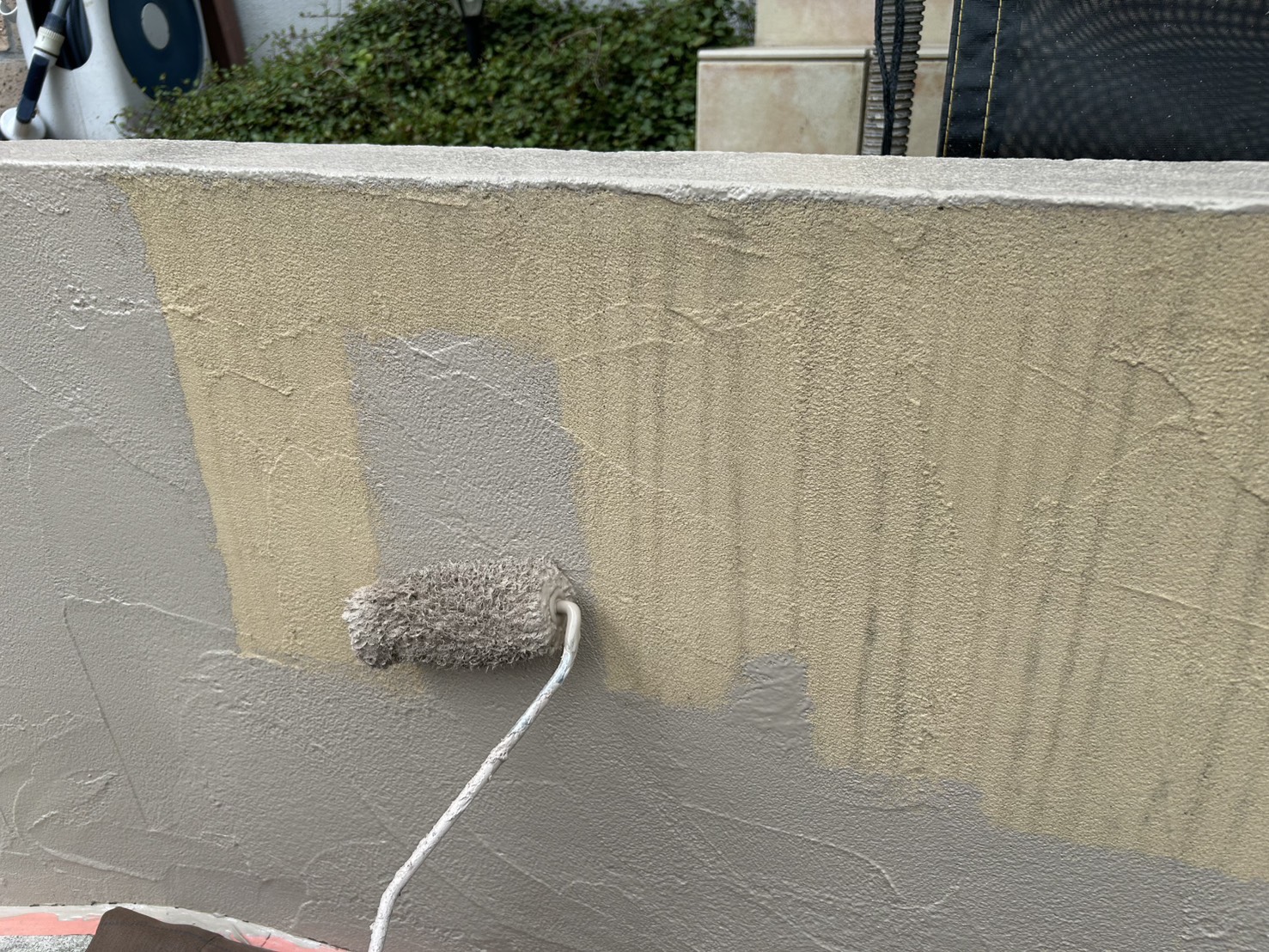 塀・門柱の塗装ですね!下塗りです。